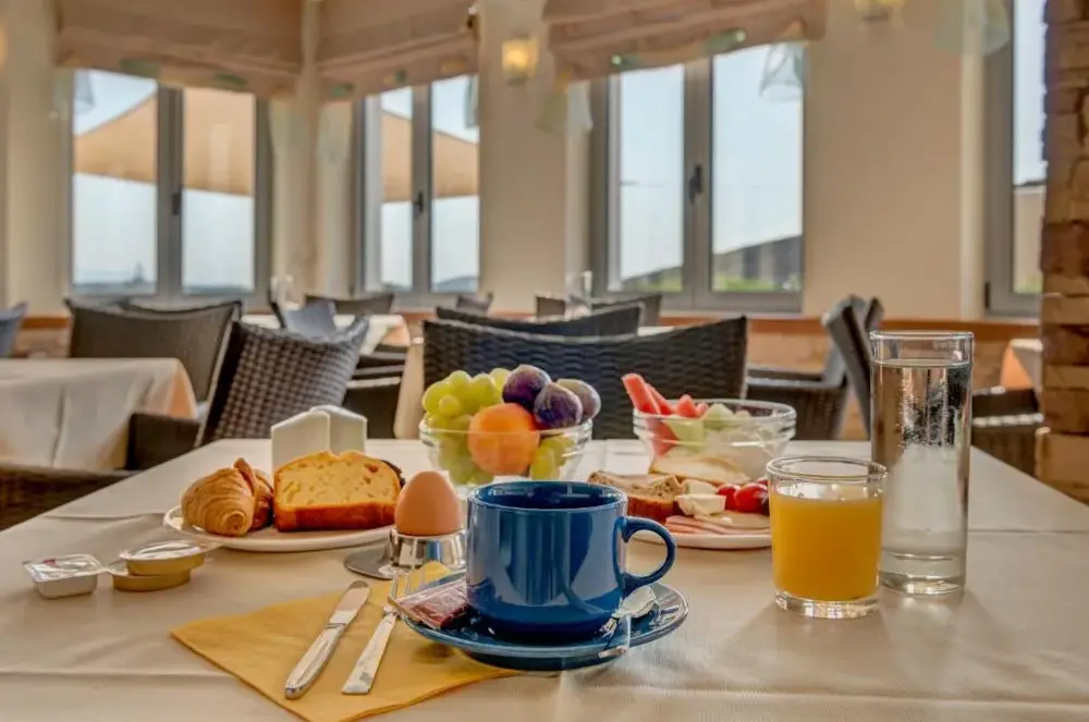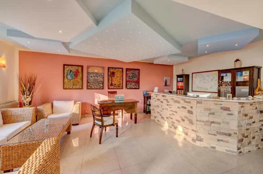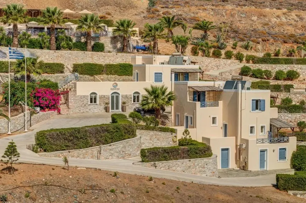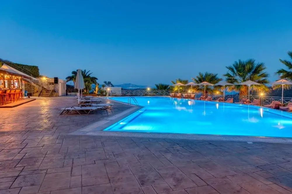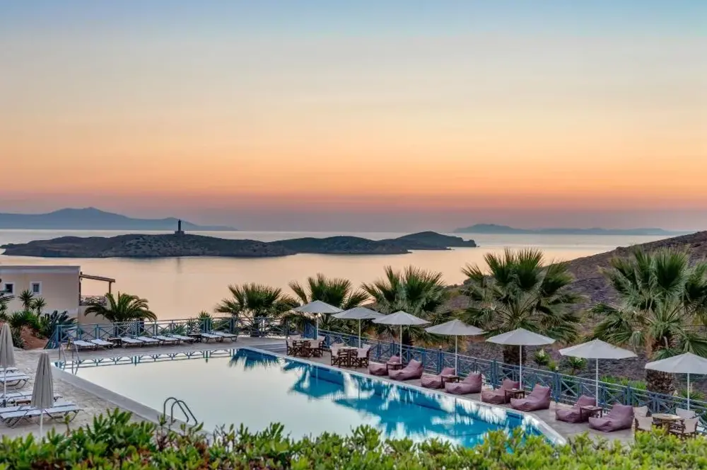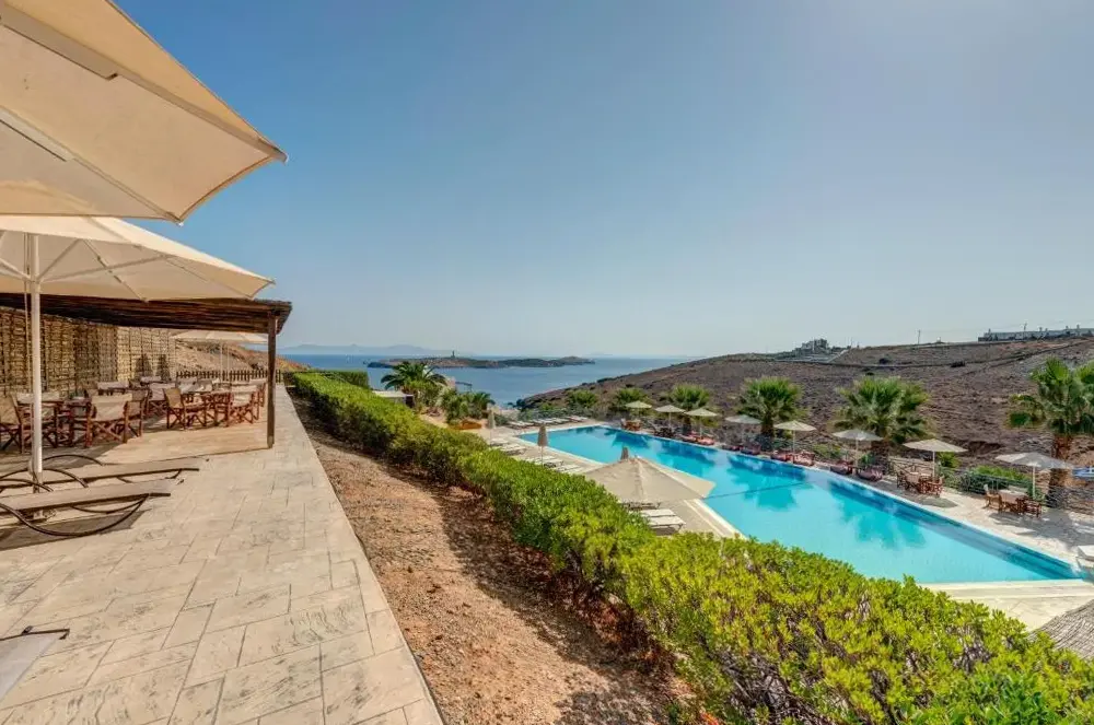 Vista incredibile e piscina deludata dall'arredamento stanco della suite.